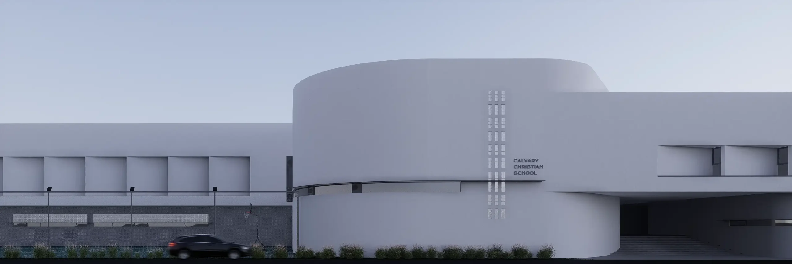 Calvary Christian School is designed to serve elementary and junior high students, organized into two distinct wings that converge at a central mass. This central core houses the school’s communal facilities, including the library and multi-purpose hall, encouraging interaction and shared experiences among different age groups. A large skylight above the central space brings in ample natural light, reducing the need for artificial lighting during the day and creating a warm, uplifting atmosphere at the heart of the campus.
